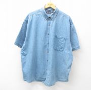 XL★古着 FADED GLORY 半袖 シャツ メンズ 大きいサイズ コットン ボタンダウン 紺 デニム