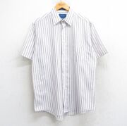 L★古着 半袖 シャツ メンズ 90年代 90s 白他 ストライプ