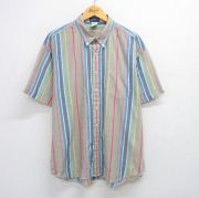 XL★古着 半袖 シャツ メンズ 90年代 90s ボタンダウン ベージュ他 ストライプ