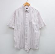 XL★古着 半袖 シャツ メンズ 90年代 90s 大きいサイズ コットン ボタンダウン 白他 ストライプ