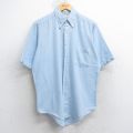 【商品名】 L★古着 半袖 シャツ メンズ 80年代 80s 千鳥格子 ボタンダウン 水色