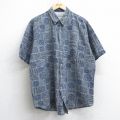 XL★古着 ビューグルボーイ 半袖 シャツ メンズ 90年代 90s 総柄 紺他 ネイビー 25jul09 中古 トップス