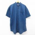 XL★古着 半袖 シャツ メンズ 90年代 90s 大きいサイズ ロング丈 コットン ボタンダウン 紺 デニム