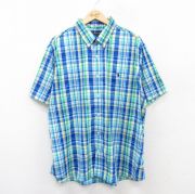 XL★古着 ラルフローレン 半袖 ブランド シャツ メンズ ワンポイントロゴ 大きいサイズ ボタンダウン 青他 チェック