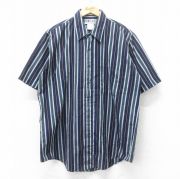 L★古着 半袖 シャツ メンズ 00年代 00s コットン 濃紺他 ストライプ