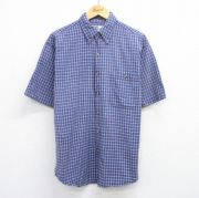 【商品名】 L★古着 半袖 シャツ メンズ 80年代 80s ボタンダウン 紺他 ギンガム チェック