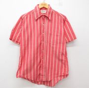 L★古着 半袖 シャツ メンズ 80年代 80s USA製 赤系他 ストライプ