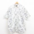 L★古着 半袖 シャツ メンズ 00年代 00s 船 総柄 ロング丈 コットン ボタンダウン 白 ホワイト 25aug08 中古 トップス