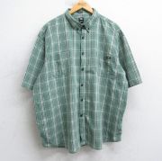 XL★古着 ディッキーズ 半袖 シャツ メンズ 大きいサイズ ボタンダウン 緑他 チェック