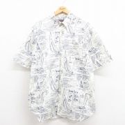 L★古着 半袖 シャツ メンズ 00年代 00s 船 総柄 ロング丈 コットン ボタンダウン 白
