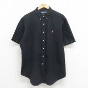 XL★古着 ラルフローレン 半袖 ブランド シャツ メンズ 90年代 90s ワンポイントロゴ 大きいサイズ コットン ボタンダウン 黒