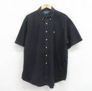 XL★古着 ラルフローレン 半袖 ブランド シャツ メンズ 90年代 90s ワンポイントロゴ BLAIRE コットン ボタンダウン 黒