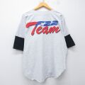 XL★古着 半袖 ベースボール シャツ メンズ 90年代 90s 飛行機 F-22 大きいサイズ コットン USA製 薄グレー 霜降り他【spe】 26apr24