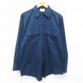 XL★古着 ディッキーズ 長袖 ワーク シャツ メンズ 大きいサイズ ロング丈 紺