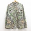 XL★古着 長袖 ハンティング シャツ メンズ モッシーオーク 大きいサイズ ロング丈 コットン ボタンダウン 緑他