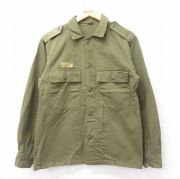 L★古着 長袖 ミリタリー シャツ メンズ 濃緑