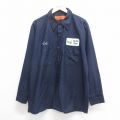 XL★古着 レッドキャップ 長袖 ワーク シャツ メンズ ロング丈 薄紺