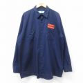 XL★古着 ディッキーズ 長袖 ワーク シャツ メンズ 00年代 00s 大きいサイズ ロング丈 USA製 紺