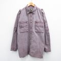 XL★古着 長袖 ワーク シャツ メンズ 大きいサイズ ロング丈 濃グレー