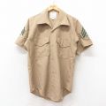 L★古着 半袖 ミリタリー シャツ メンズ 90年代 90s マリンコープス 開襟 オープンカラー 濃ベージュ