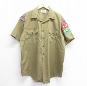 L★古着 半袖 ボーイスカウト シャツ メンズ 90年代 90s ワッペン USA製 ベージュ