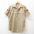 【商品名】 M★古着 半袖 ミリタリー シャツ メンズ 80年代 80s 開襟 オープンカラー ベージュ