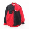 【商品名】 L★古着 長袖 ウエスタン シャツ メンズ 90年代 90s ツートンカラー コットン ノーカラー USA製 赤他