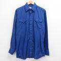 M★古着 長袖 ウエスタン シャツ メンズ 90年代 90s ロング丈 紺 ネイビー 25jan27 中古 トップス
