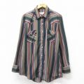 L★古着 長袖 ウエスタン シャツ メンズ 90年代 90s USA製 青緑他 ストライプ