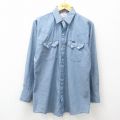 XL★古着 ラングラー 長袖 ウエスタン シャツ メンズ 大きいサイズ コットン 薄紺 デニム