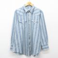 XL★古着 長袖 ウエスタン シャツ メンズ 大きいサイズ 白他 ストライプ