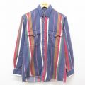 【商品名】 M★古着 長袖 ウエスタン シャツ メンズ 90年代 90s 紺他 ストライプ