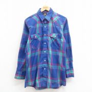 L★古着 長袖 ウエスタン シャツ メンズ 00年代 00s 青他 チェック