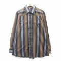 【商品名】 XL★古着 長袖 ウエスタン シャツ メンズ 90年代 90s 大きいサイズ ロング丈 USA製 茶他 ストライプ【spe】