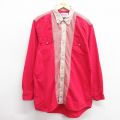 XL★古着 長袖 ウエスタン シャツ メンズ 大きいサイズ コットン 赤