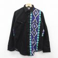 【商品名】 M★古着 長袖 ウエスタン シャツ メンズ 90年代 90s ネイティブ柄 ラグ柄 コットン USA製 黒他