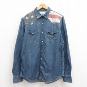 M★古着 ラルフローレン デニムアンドサプライ 長袖 ウエスタン シャツ メンズ 星条旗 コットン 濃紺 デニム