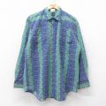 M★古着 ロッキーマウンテン 長袖 ウエスタン シャツ メンズ 90年代 90s ネイティブ柄 ラグ柄 ロング丈 コットン ボタンダウン USA製 青緑他