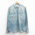XL★古着 長袖 ウエスタン シャツ メンズ 90年代 90s コットン ボタンダウン 薄紺他