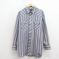XL★古着 ラングラー 長袖 ウエスタン シャツ メンズ 大きいサイズ ロング丈 薄紺 ストライプ 26apr24