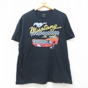 XL★古着 半袖 Tシャツ メンズ フォード Ford 車 クラシックカー ムスタング 大きいサイズ コットン クルーネック 黒