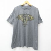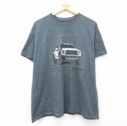 XL★古着 半袖 Tシャツ メンズ 車 クラシックカー mistress 大きいサイズ クルーネック 濃グレー 霜降り