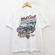XL★古着 半袖 Tシャツ メンズ 車 レーシングカー クラシックカー 大きいサイズ クルーネック 白