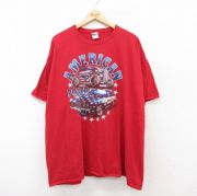 XL★古着 半袖 Tシャツ メンズ 車 クラシックカー コットン クルーネック 赤