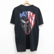 XL★古着 半袖 Tシャツ メンズ シボレー 星条旗 コットン クルーネック 黒