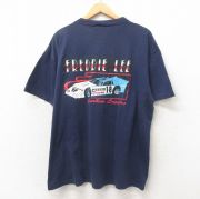 XL★古着 半袖 ビンテージ Tシャツ メンズ 00年代 00s レーシングカー サイン入り 大きいサイズ コットン クルーネック 青