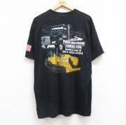 XL★古着 半袖 ビンテージ Tシャツ メンズ 00年代 00s トラック CAT 大きいサイズ クルーネック 黒