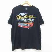 XL★古着 半袖 Tシャツ メンズ フォード Ford 車 クラシックカー ムスタング 大きいサイズ コットン クルーネック 黒
