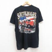 XL★古着 半袖 Tシャツ メンズ 消防車 コットン クルーネック 黒