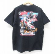 XL★古着 半袖 Tシャツ メンズ レーシング ケヴィンハーヴィック 4 大きいサイズ コットン クルーネック 黒